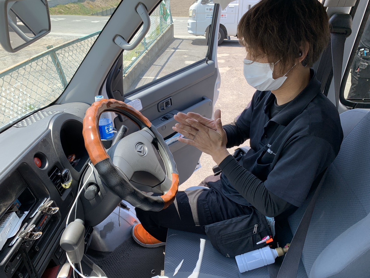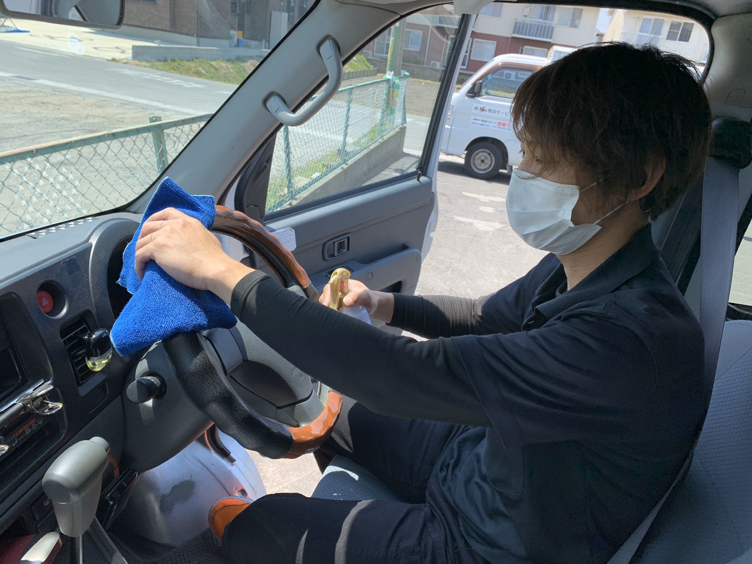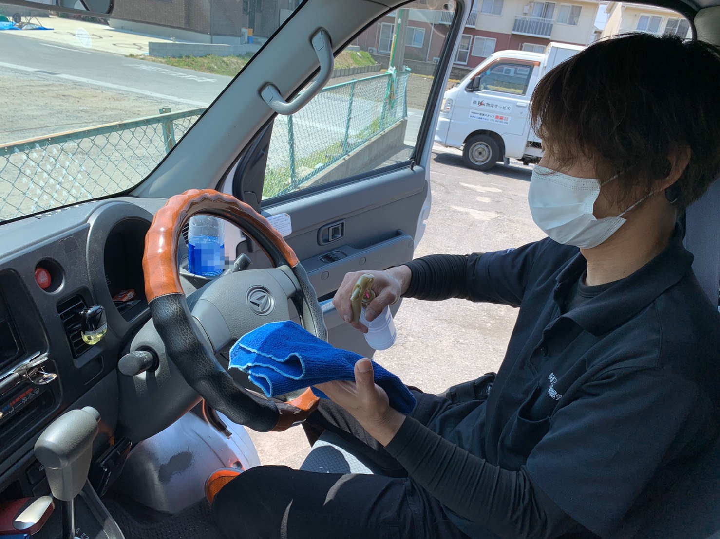 出発前、配送途中時に、ハンドルや車両内の除菌